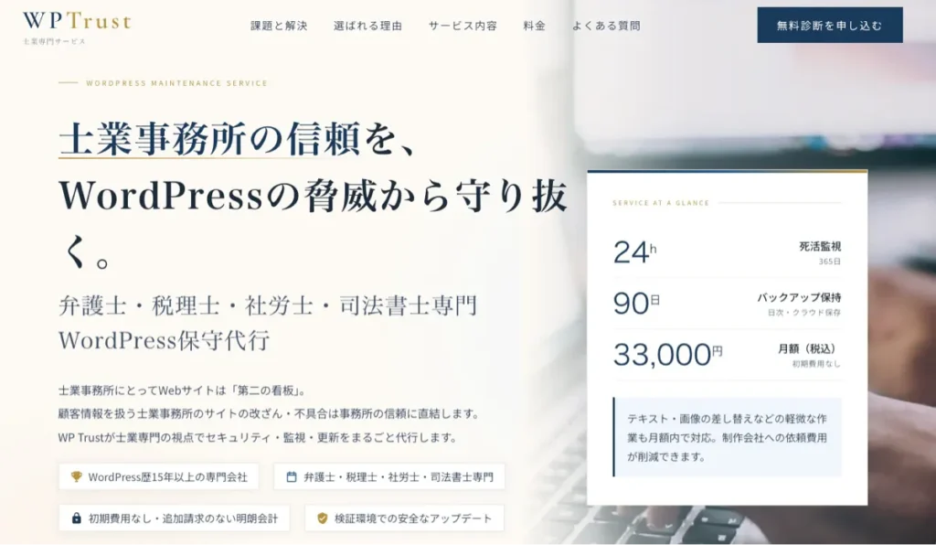 WordPressサイトの保守・管理、運用を代行するサービスを行っています。